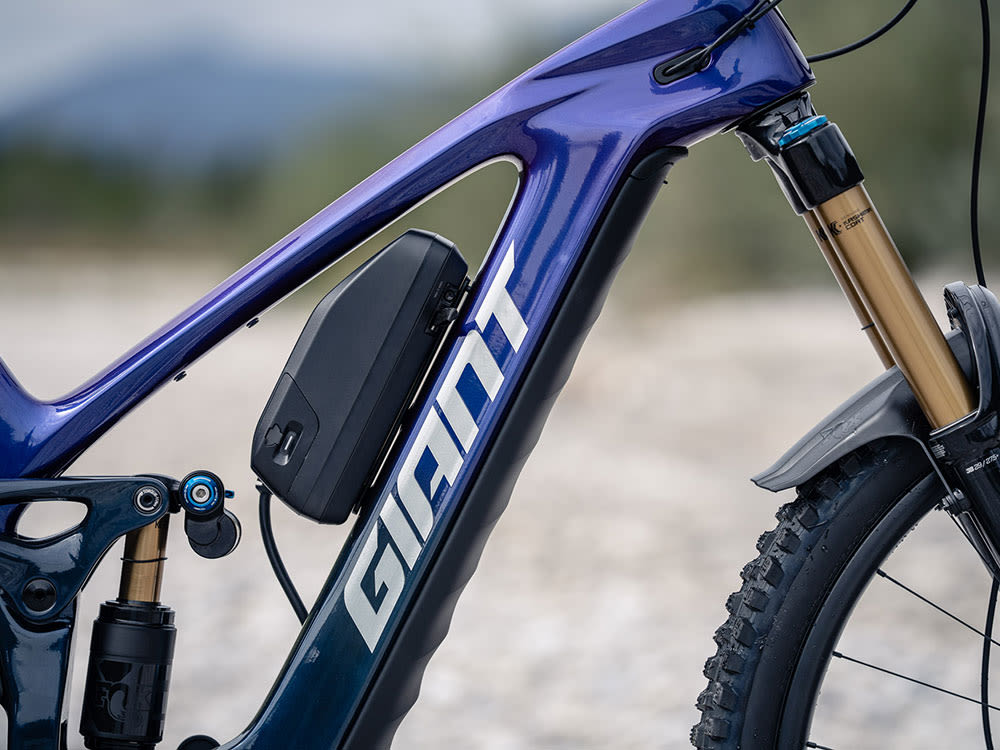 • Rodas: Aros Giant TRX Carbon (largura interior 30 mm) + cubos Giant TRX E-Drive 260Nm, 15×110 mm à frente / 12×148 mm atrás, desenhados para E-MTB.