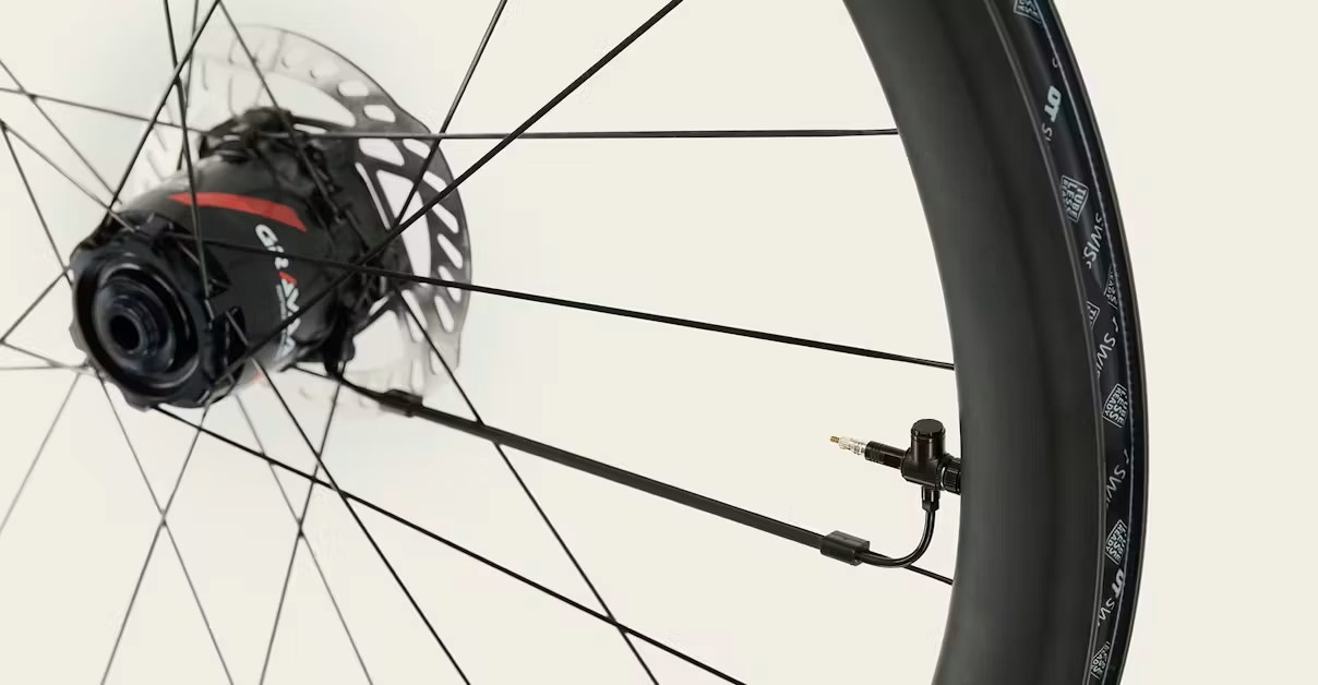Um micro compressor, acionado pela rotação das rodas, conseguia dar pressão ou tirar pressão aos pneus sem paragens. Desta forma, a bicicleta adaptava-se a asfalto, pavé ou gravel durante a própria corrida.