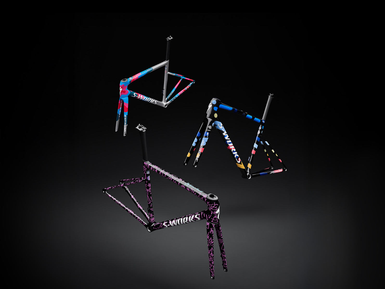 Produzidas em unidades limitadas, estas versões especiais do quadro da S-Works Tarmac SL8 são na verdade colaborações com três artistas internacionais. Custam 5.499 euros cada quadro e são o LTD – Lucas Beaufort, LTD – Parra e LTD Yoon Hyup.