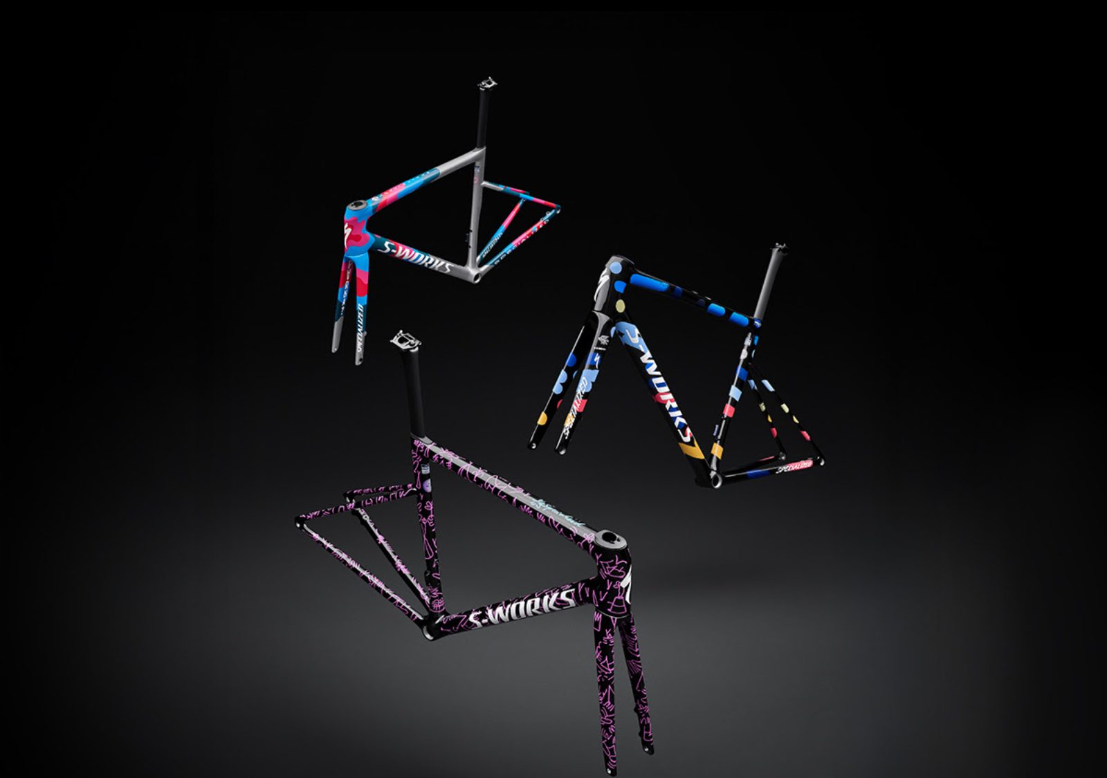 Produzidas em unidades limitadas, estas versões especiais do quadro da S-Works Tarmac SL8 são na verdade colaborações com três artistas internacionais. Custam 5.499 euros cada quadro e são o LTD – Lucas Beaufort, LTD – Parra e LTD Yoon Hyup.