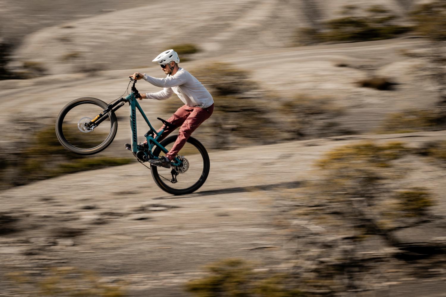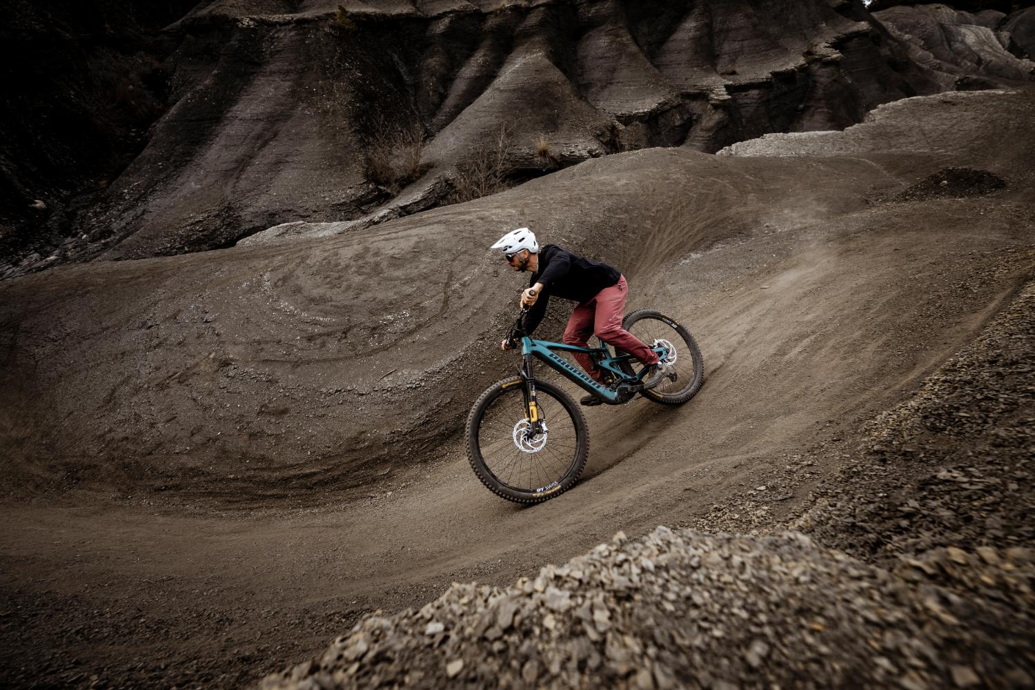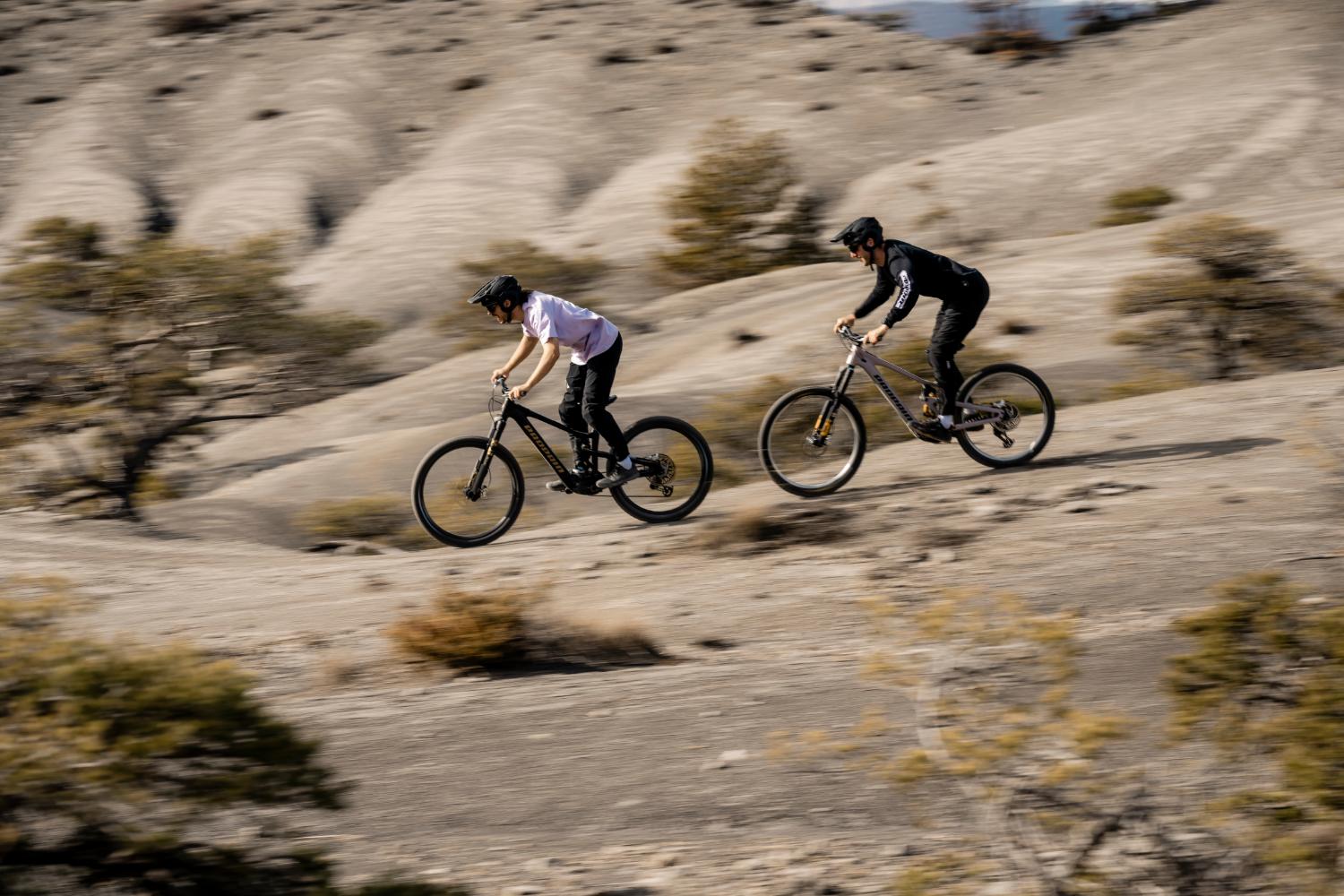A versão Trail tem amortecimento com 160 mm de curso à frente e 150 mm atrás, podendo ser configurada com rodas 29” ou mullet. A abordagem aqui é mais polivalente, pensada para percursos longos, voltas diárias e trilhos variados, com um comportamento mais leve e previsível.