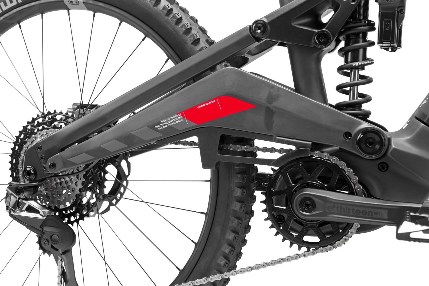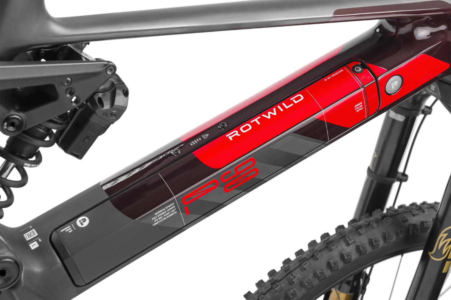 A R.EXC utiliza um sistema Mid-High Pivot com amortecedor vertical, que altera a trajetória da roda traseira durante a compressão. Na prática, isto pode permitir manter estabilidade a alta velocidade e melhorar a capacidade de absorção em impactos sucessivos, refere a ROTWILD.