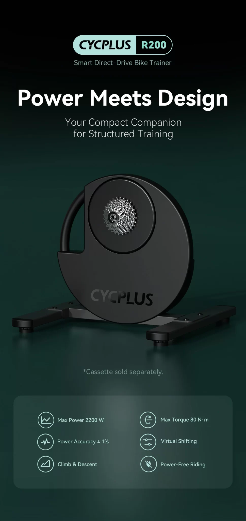 Partilha!X Este novo rolo Cycplus é o mais recente da gama e é um verdadeiro smart trainer (com direct drive) a preço "canhão". Vê o que está incluído. O R200 é o mais recente rolo Cycplus, neste caso um smart trainer com direct drive que a marca chinesa lançou recentemente e comercializa por cerca de 346 euros.PUB No coração do novo R200 está um sistema de resistência eletromagnética suportado por 52 ímanes de neodímio, combinados com 48 conjuntos de eletroímans, oferecendo uma potência máxima anunciada de 2.200 W. Segundo a marca, a precisão da medição de potência é de ±1%, o que é bastante ambicioso para o preço pedido, refira-se. Outro ponto em destaque são as ligações: o R200 suporta Bluetooth 5.0 e ANT+, assim como os protocolos comuns de treino indoor, como ANT+, FE-C e FTMS via BLE. Além disso, tem auto-calibração, por ser um direct-drive, não exigindo os tradicionais spin downs para ajustar a precisão. Em termos de simulação, é capaz de reproduzir inclinações até 19%, o que permite treinos realistas para subidas virtuais exigentes, garante a Cycplus. Para desacelerar, oferece uma força de travagem de até 250 N, e um binário máximo de 80 Nm. Em termos de estrutura, mede cerca de 517 x 520 x 465 mm e pesa 13,6 kg. A fonte de alimentação oficial é de 48 V / 1,25 A, mas há um modo “unplugged”, embora a Cycplus recomende que o rolo esteja ligado para treinos intensos, para manter o sistema de arrefecimento ativo. Em termos de compatibilidade, aceita cassetes Shimano de 8 a 12 velocidades e SRAM de 8 a 12 (incluindo XDR, mas este é vendido separadamente, tal como não é fornecida qualquer cassete). Também permite vários tamanhos de quadro: 5×130/5×135 com quick release e 12×142/12×148 com thru-axle.PUB Este novo rolo Cycplus R200 custa cerca de 346 euros e a garantia é de dois anos. Especificações do rolo Cycplus R200: Modelo: CYCPLUS R200 Tipo: Smart Trainer, Direct-drive Sistema magnético: 52 ímanes de neodímio + 48 conjuntos de eletroímãs Dimensões: 517 × 520 × 465 mm Peso: 13,6 kg Fonte de alimentação: 48 V / 1,25 A (suporta modo “unplugged”) Potência máxima: 2.200 W Precisão da medição de potência: ± 1% Calibração: não é necessário (“auto calibração”) Inclinação máxima simulada: ~19% Simulação de descidas: só no modo ligado (plug-in) Torque máximo: 80 N·m Força de travagem máxima: 250 N Conetividade sem fios: Bluetooth 5.0 + ANT+ Protocolos suportados: ANT+ FE-C e BLE FTMS Compatibilidade de quadro: Quick release: 5 × 130 / 5 × 135 Through-axle: 12 × 142 / 12 × 148 Compatibilidade de cassete: Shimano: 8 a 12 velocidades SRAM: 8 a 11 velocidades SRAM 12 velocidades XDR (hub XDR vendido separadamente) Mais informações: www.cycplus.com Crédito das imagens: Cycplus