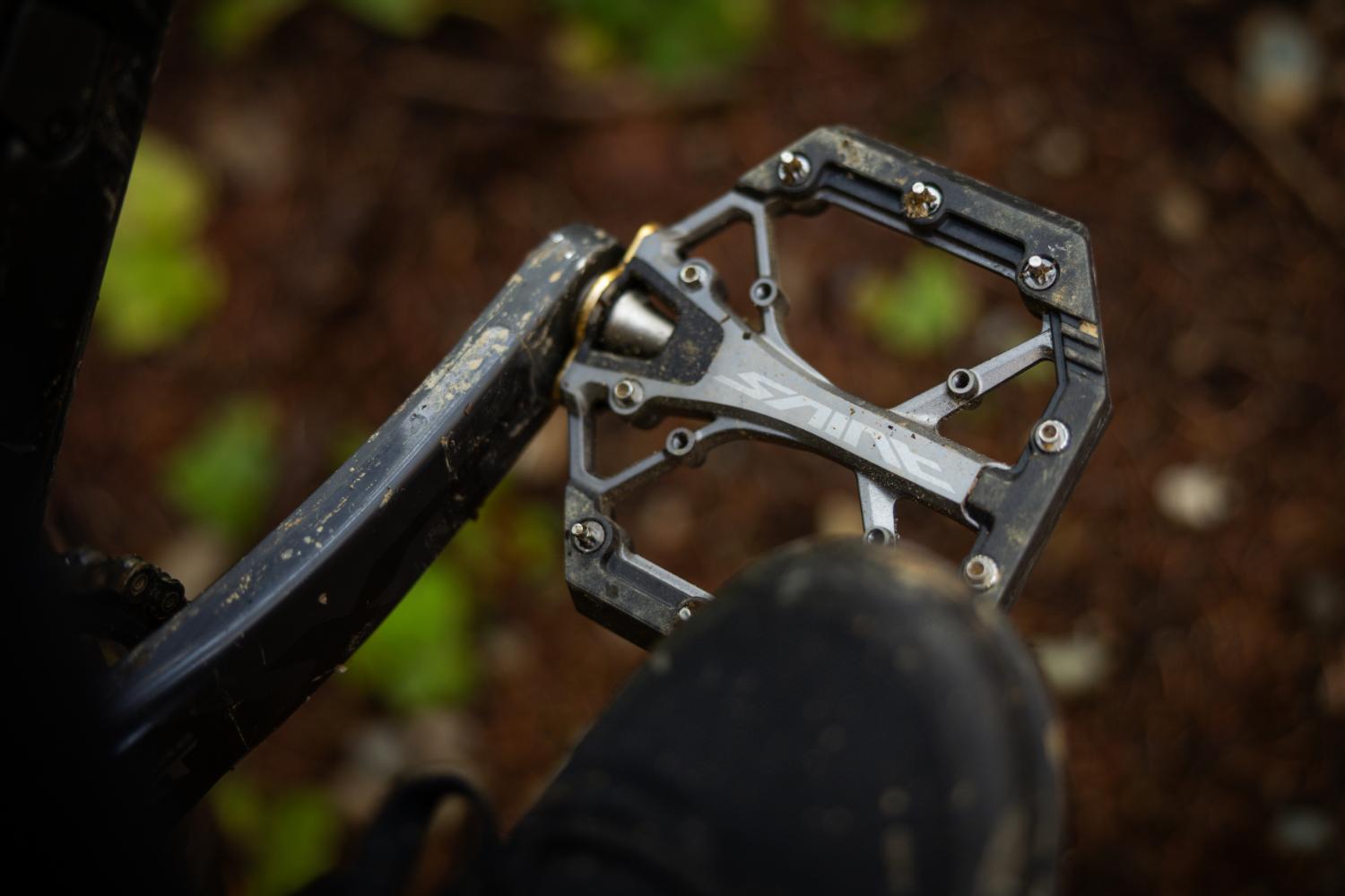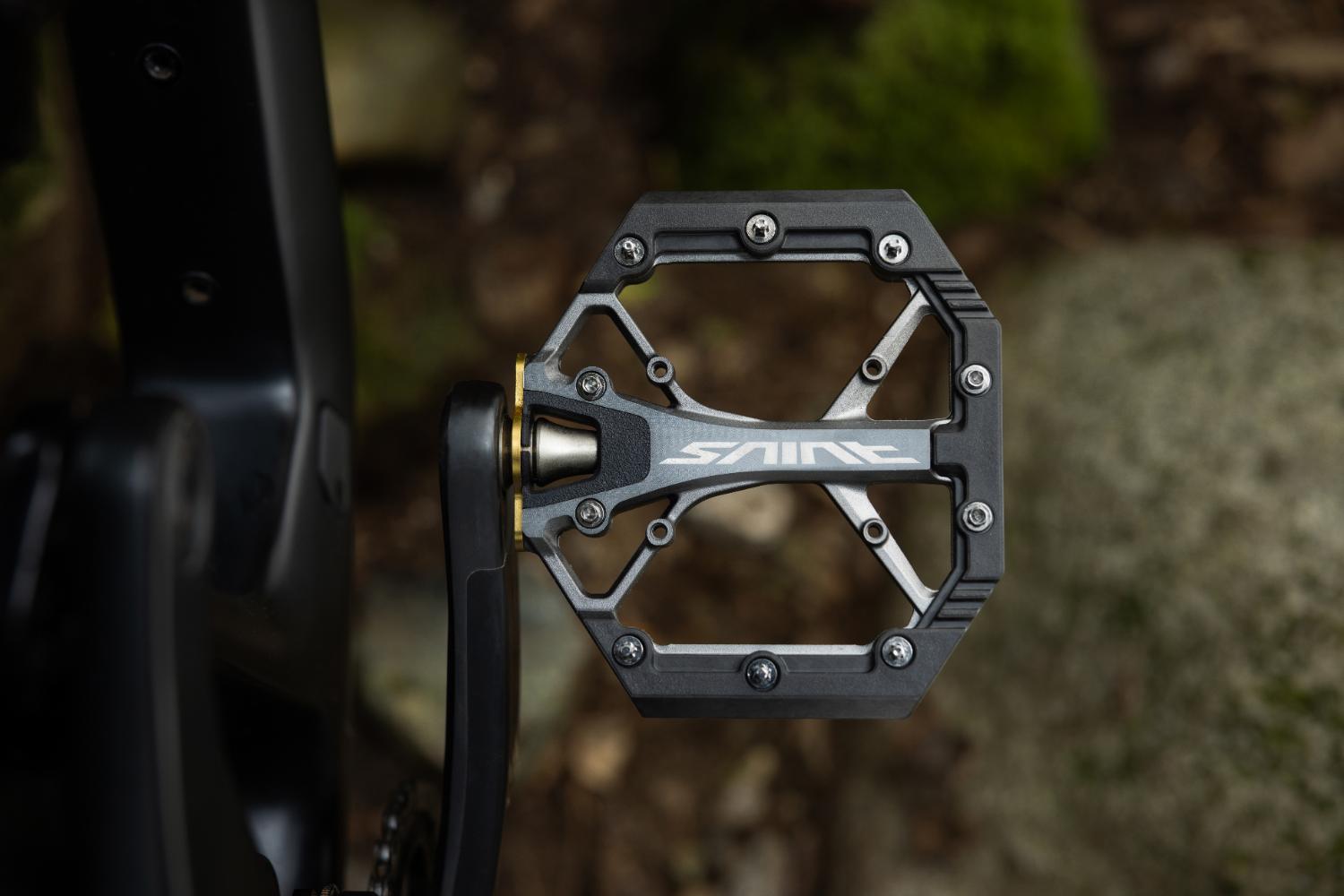 Mantém a mesma dimensão de plataforma e formato, mas com duas posições internas opcionais para os pinos. O corpo é também em alumínio, sem a proteção extra presente no Saint.