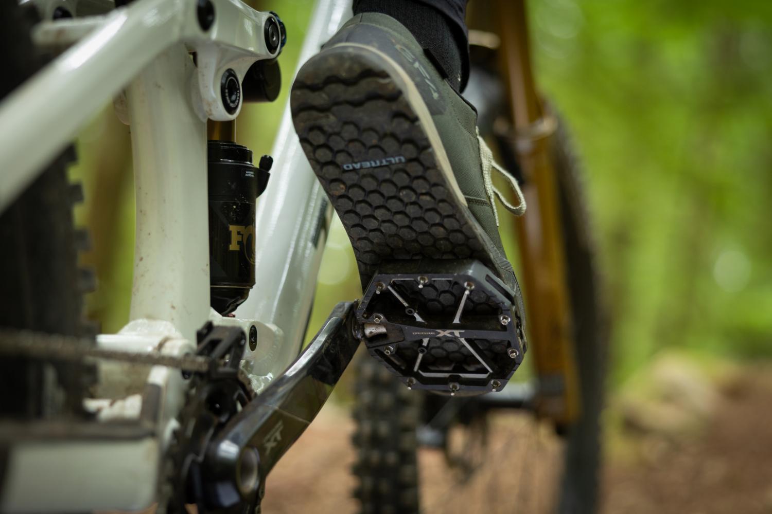 Ambos os modelos partilham a mesma base: uma plataforma larga (121 x 110 mm), com formato côncavo duplo e perfil baixo. Este tipo de desenho permite que o pé “assente” melhor no pedal, “aumentando a estabilidade em zonas técnicas”, garante o fabricante japonês.