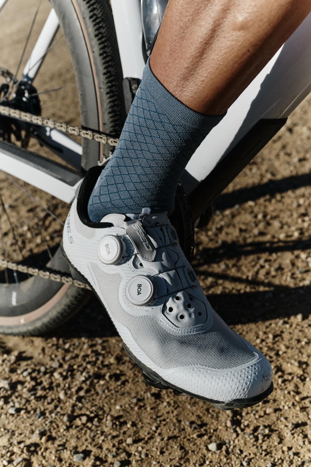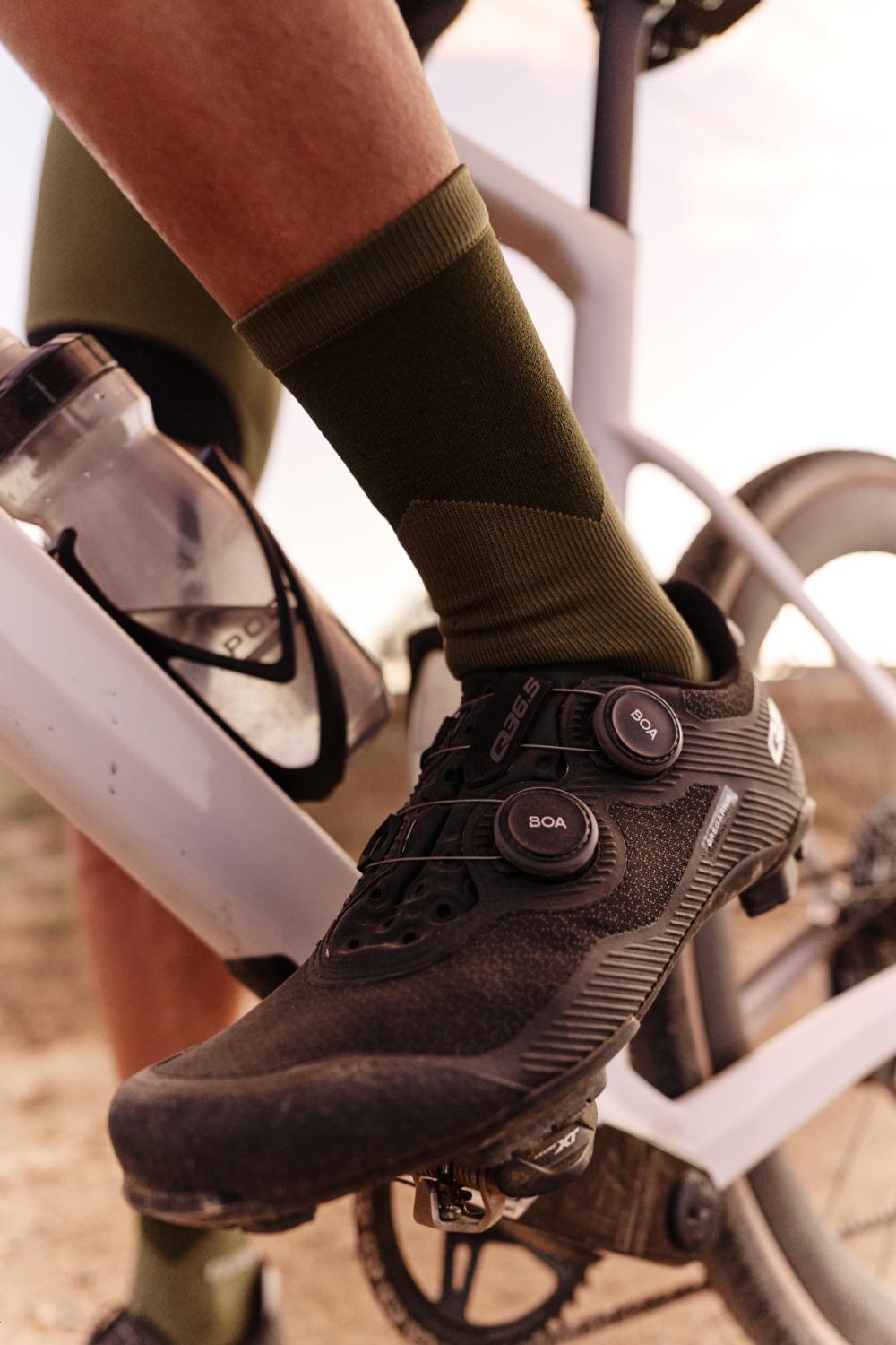 Partilha!X Os sapatos Q36.5 Gregarius Road são para o asfalto e para as longas distâncias, enquanto os Gregarius Adventure são para terrenos mistos, gravel e off-road. Esta marca italiana continua a expandir a sua linha de calçado técnico, agora com o lançamento de dois novos modelos de sapatos Q36.5 concebidos para diferentes estilos de ciclismo: os Gregarius Road, para estrada, e os Gregarius Adventure, para terrenos mistos, gravel e BTT, à partida.PUB Ambos os modelos integram soluções derivadas das gamas topo de gama Dottore e Clima deste fabricante, mas com um design mais versátil e acessível. Os Gregarius Road foram pensadas para ciclistas de estrada. A parte superior, em microfibra de malha aberta, promete mais ventilação, enquanto a sola é feita em compósito de fibra de carbono e poliamida. Estão disponíveis dos tamanhos 37 ao 48, pesam 250 gramas (tamanho 42). Já os Gregarius Adventure são a opção para quem alterna entre o asfalto e a terra. Mantêm a mesma construção da versão Road, mas acrescentam uma língua termoformada de estilo clássico e uma sola reforçada com tacos. Também utilizam uma base de carbono e poliamida, mais larga, com peso total de 310 gramas (tamanho 42).PUB Ambos os modelos partilham a tecnologia Solestar, uma palmilha que posiciona o pé na chamada Optimal Neutral Position. A zona metatarsal foi redesenhada, com maior largura para se adaptar a diferentes formatos de pé. Mais informações: www.q36-5.com Crédito das imagens: Q36.5