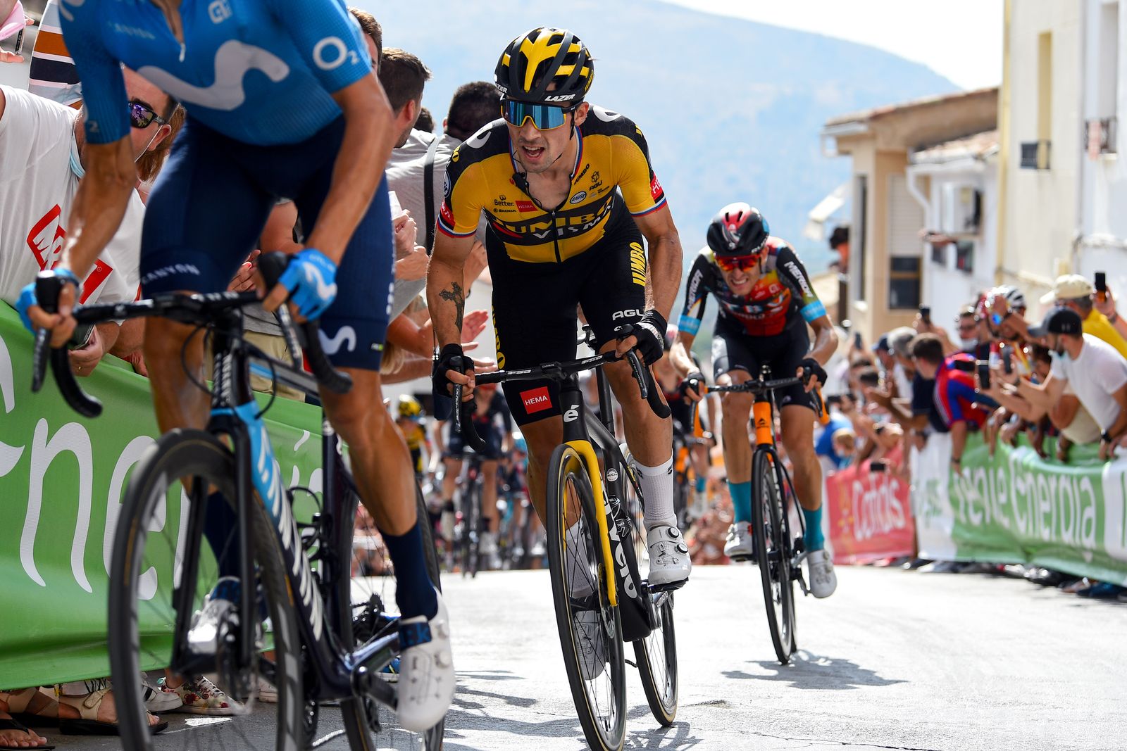 Partilha!X Etapa terminou numa curta, mas íngreme subida, onde o esloveno da Jumbo-Visma voltou a aplicar a sua capacidade de explosão, arrecadando mais uma vitória, que apenas Enric Mas (Movistar) conseguiu deixar em dúvida até aos metros finais. Primoz Roglic continua imparável na Vuelta a Espanha. O esloveno da Jumbo-Visma, vencedor das duas últimas edições da prova, tem-se imposto aos rivais em todas as etapas seletivas para vencer, e a jornada desta quarta-feira, em Valdepeñas de Jaén, na Andaluzia, não foi exceção.PUB O dia de competição terminou numa curta, mas íngreme subida, e Roglic voltou a aplicar a sua capacidade de explosão, arrecadando mais uma vitória que apenas Enric Mas (Movistar) conseguiu deixar em dúvida até aos metros finais. Roglic chegou à meta com três segundos sobre o espanhol da Mosvistar, que parece deparar-se, cada vez mais, como o único capaz de se opor ao seu terceiro consecutivo triunfo na Vuelta. Enric Mas terminou em segundo na etapa, depois de um ombro a ombro emocionante com Roglic nas rampas terríveis finais, com o seu companheiro de equipa, Miguel Angel Lopez, em terceiro, a cinco segundos do vencedor. Os outros candidatos terminaram alinhados e com, pelo menos, a sete segundos de Roglic, com destaque para Egan Bernal (Ineos Grenadiers), em nono, a 11 segundos. Odd Christian Eiking (Intermarché-Wanty-Gobert) defendeu-se com galhardia a camisola vermelha para conseguir terminar em décimo na tirada, também a 11 segundos de Roglic, e assim manteve o símbolo de líder da corrida. Guillaume Martin (Cofidis) também continua em segundo da geral, a 58 segundos, enquanto Roglic encurtou a desvantagem para 1.56 minutos.PUB