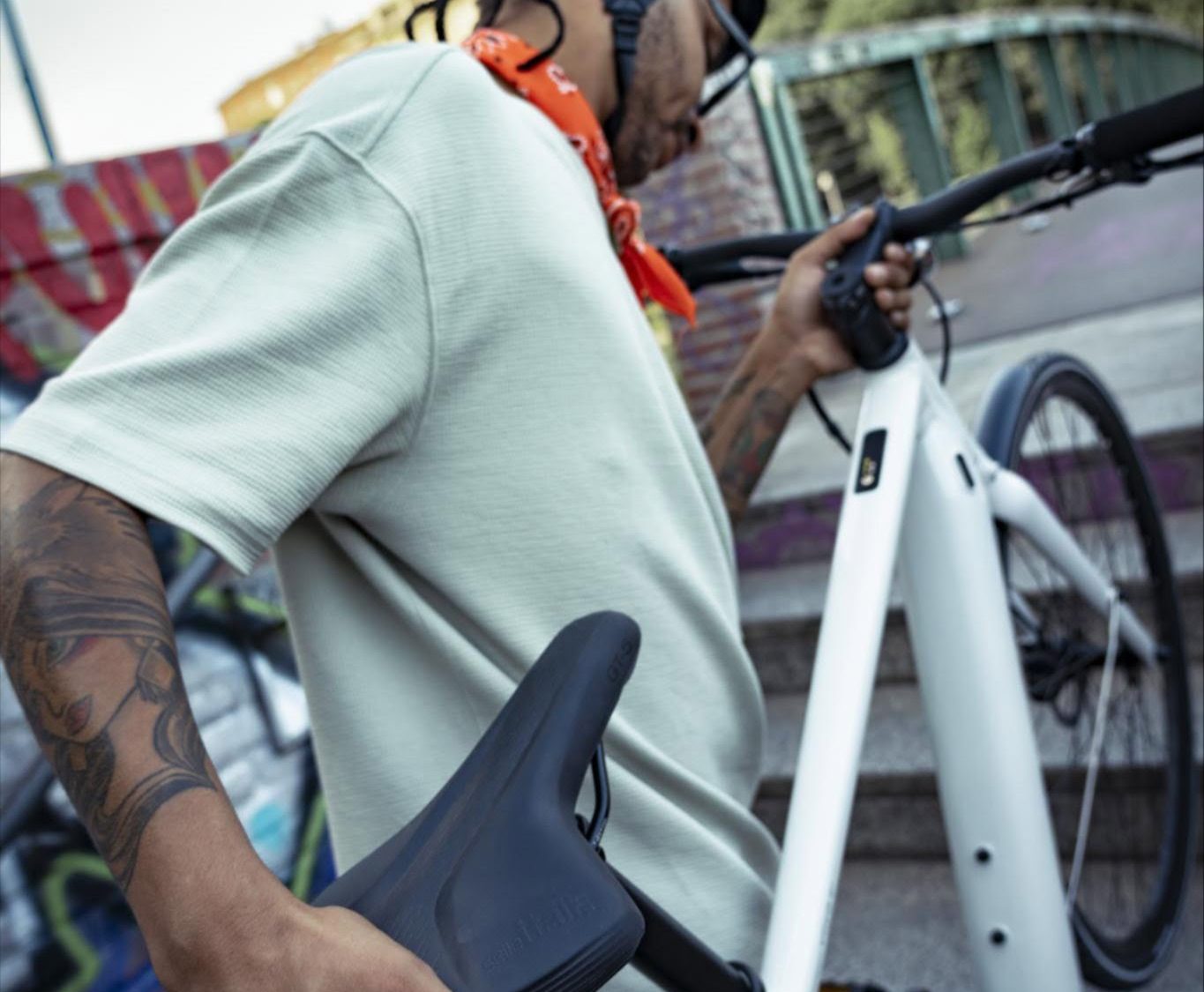 Um pormenor que resalta imediatamente à vista é o design da parte traseira: sim, é uma pega! Dado o peso acrescido das e-bikes, por vezes é complicado levantar a bicicleta. Com esta pega/puxador integrado, a Selle Italia consegue melhorar esta situação…