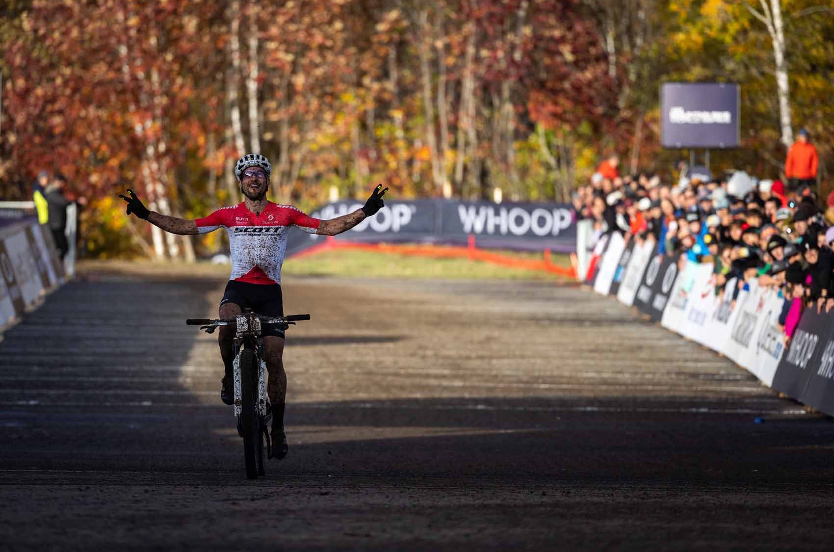 The 2023 UCI MTB World Champion takes the win in the rainbow stripes 🌈 in Mont-Sainte-Anne. @MTBworldseries | #MTBWorldCup pic.twitter.com/041ZseuFmp