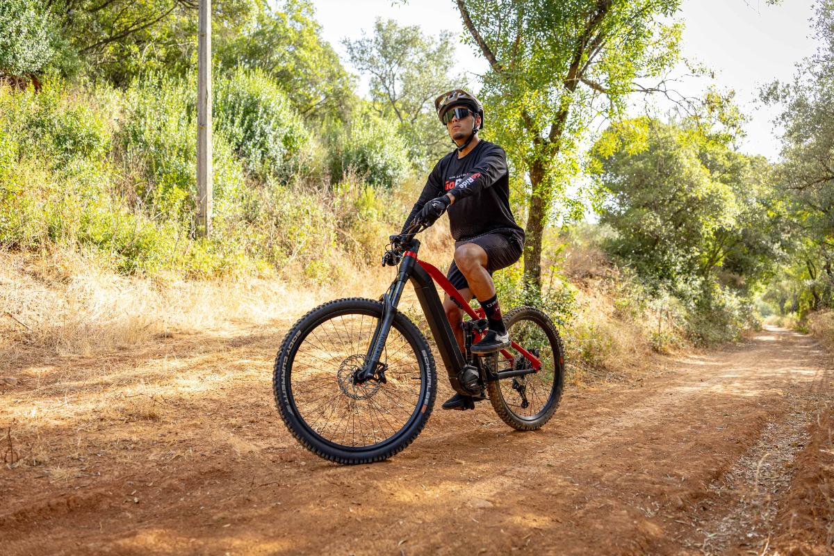 Partilha!X Esta e-bike Beeq é a suspensão total mais acessível do portfólio da marca portuguesa e quisemos levá-la ao limite. Vê neste artigo e no teste em vídeo como ela se comportou nuns bons saltos na montanha! Abaixo de 3.000 euros, esta e-bike Beeq M850 Full Suspension é uma suspensão total bastante eficaz: com uma boa “mistura” de roda 29” com 27,5”, é capaz de divertir-nos e ajudar-nos em vários momentos, trazendo uma seleção de material ajustada ao preço e competente.PUB Em destaque estão o quadro e as rodas em alumínio made em Portugal, nas fábricas da RTE, o amortecimento sempre a postos para momentos um pouco mais “abusados” e as boas sensações nos trilhos. Mas também há pontos a rever numa eventual próxima geração… Está tudo já a seguir, nos vários vídeos da Beeq que adicionámos ao longo deste teste e também na vídeo review acima, com o nosso amigo João Silva a “espremer” ao máximo este e-bike de montanha, com uns bons saltos! Esperamos que gostem. A nossa avaliação… De forma geral, esta Beeq M850 FS é uma e-bike que combina potência, conforto e diversão. É uma opção a ter em conta para quem procura uma experiência interessante e divertida nos trilhos com o apoio de um sistema elétrico. Não vai além do que modelos de outras marcas conceituadas conseguem fazer, é certo, mas também não lhes fica atrás, seja para superar subidas complicadas ou para aproveitar descidas rápidas ou uns bons saltos. Quanto ao material e aos componentes que estão instalados de origem, há pontos que merecem um upgrade ao longo do tempo e à medida que vamos evoluindo na vertente do enduro. O que é fornecido revela-se à imagem do patamar de preço, preço este que é de certa forma um dos grandes trunfos desta e-bike. O que mais nos agrada… O preço de 2.999 euros. Há outras e-bikes de montanha neste patamar de valores, sim, especialmente quando o quadro não vai além do alumínio, mas o preço será sempre um fator positivo nestas bicicletas. A cor e o design em geral da bicicleta chamam a atenção logo de início. O controlo que nos dá a configuração mullet, com o melhor de uma roda de 29″ na frente, que oferece controlo e estabilidade, e o melhor de uma roda de 27,5″ na traseira, que proporciona tração e conforto. As suspensões RockShox de 150 mm (frente e trás), que fazem um trabalho bastante bom em trilhos mais técnicos. O que menos nos agrada… Os pedais de plástico, que poderiam ser de melhor qualidade. Mas este é um item que pode desde logo ser substituído pelos pedais de que mais gostamos. Tudo certo. A autonomia no modo Turbo é demasiado curta, como é habitual nas elétricas de montanha. É preciso gerir bem! O tempo de carga total da bateria poderia ser um pouco mais rápido… Especificações (https://pt.beeq-bicycles.com) » Preço: 2.999 euros Quadro: MTB FS Full Aluminium 150 mm Peso aprox.: 26 kg Cores disponíveis: Dark Night, Pure Red Suspensão dianteira: RockShox 35S Ar, curso 150 mm, Boost 110 mm, roda 29” Amortecedor traseiro: RockShox Deluxe Select+ Trunnion (205×57.5), curso 150 mm Motor: Shimano Steps EP800, 85 Nm Bateria: 630 Wh, 36V, integrada e removível Autonomia estimada: 40 a 100 km Ecrã: Shimano SC-E7000 Carregador: 2A (6 a 8h carga total) Guiador: Alumínio 780 mm / 31.8 mm / elevação 20 mm Avanço: Alumínio 40 mm, 31.8 mm, 0º Punhos: VP VPG 122A Rodas: Mullet (27.5” atrás / 29” frente), alumínio parede dupla (30 mm frente, 35 mm traseira), tubeless ready Pneus: Continental TrailKing 29”x2.4” (frente), MountainKing 27.5”x2.6” (trás) Desviador traseiro: Shimano Deore 11x Cassete: Shimano Deore 11-51t Manípulo: Shimano Deore 11x Travões: Shimano hidráulico MT520 (discos 203 mm frente, 180 mm atrás) Pedaleiro: Shimano FC-EM600 165 mm Prato pedaleiro: Miranda ChainFlow 3D BCD104 36t Corrente: KMC e11 Turbo e-bike series Selim: Selle San Marco GND Espigão: KindShock Dropper Post Lev Integra, curso 150 mm Pedais: MARWI SP-400 Flat com refletores Luz frontal: Litemove SE-110 com refletor (110 Lux) Review completa Durante os nossos testes a esta e-bike Beeq M850 Full Suspension, talvez uma das elétricas de montanha mais acessíveis do momento (custa 2.999 euros!), fomos ouvindo algumas “bocas” de vários colegas de volta e treino…PUB “Mas quem compra bicicletas desse tipo?”, foi o que mais ouvimos. Fácil: quem gosta de praticar trail e enduro nas montanhas, na floresta, mas que tem como momentos preferidos aqueles em que rolam, andam depressa, descem, saltam… As subidas não são efetivamente as partes que mais gostam, por isso arranjaram solução: uma elétrica. Ou seja, assistência de um motor para chegar lá cima mais depressa, para depois poderem descer e “curtir” de novo. Há quem concorde com esta preferência no mundo do BTT, há quem não goste do conceito. Mas o que interessa é a diversão! E isso esta Beeq M850 FS consegue proporcionar, isso é certo. Vamos ver como e por quê. Dirigindo-se em especial aos praticantes de e-enduro, esta Beeq M850 FS ajudou a conquistar títulos nacionais neste ano de 2025. Aos comandos deste modelo, o atleta Beeq João Rodrigues sagrou-se recentemente campeão nacional de e-enduro na categoria de E-35, enquanto Afonso Pinto usou também uma M850 FS para ser vice-campeão na categoria de E-Elites…PUB Fazendo uma “ronda” pelos componentes mais interessantes desta e-bike, o melhor será sempre começar pelo sistema elétrico que lhe serve de base: motor Shimano EP800 com 85 Nm de força, bateria de 630 Wh que podemos remover e levar para casa para recarregar. Sempre prático. Mais à frente falamos de como se comporta. No cockpit, o visor Shimano SC-E7000 é o que nos permite ir acompanhando o estado da bateria e vendo qual o modo de condução e assistência que temos selecionado a cada momento. Há compatibilidade com a app Shimano E-Tube para afinar alguns parâmetros nos modos de ass