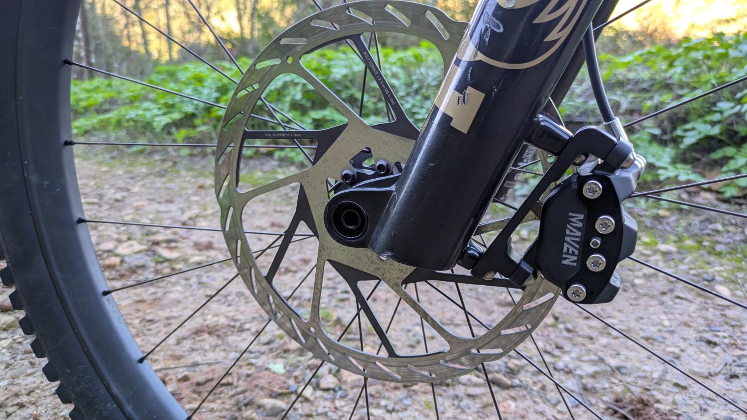 O sistema de travagem SRAM Maven Silver com discos de 220 mm à frente e 200 mm atrás garante potência de travagem consistente, e isto em ambos os modelos, sendo que na SL o disco de trás tem apenas 200 mm. Sem problemas.