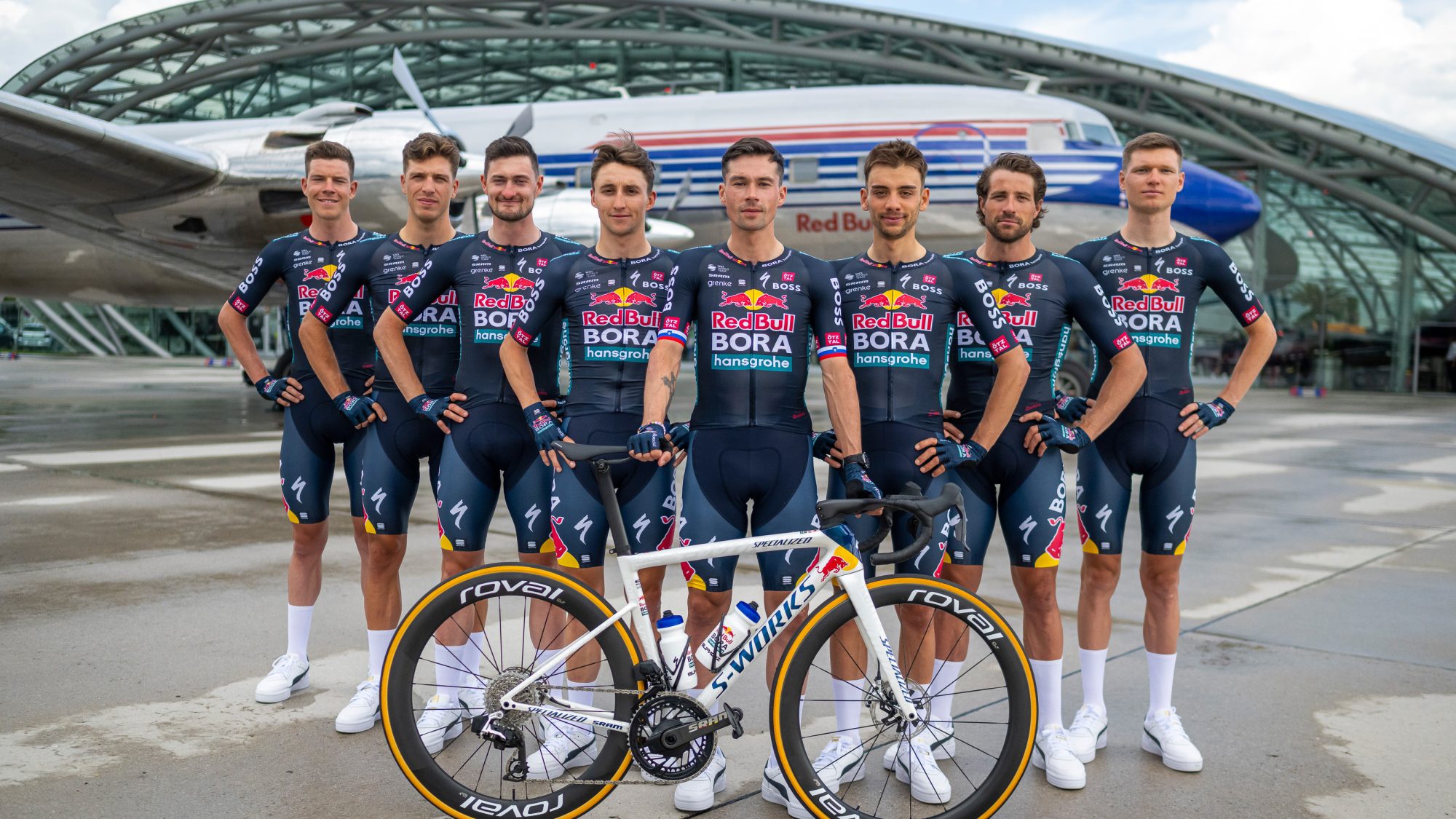 Para a ocasião, a WorldTeam dirigida por Ralph Denk revelou sua nova camisola, tendo o preto como cor principal. Na frente do jersey, encontramos os dois parceiros principais, Red Bull e BORA-hangrohe, com o logotipo da RedBull em destaque. O mesmo nas costas e nos calções.