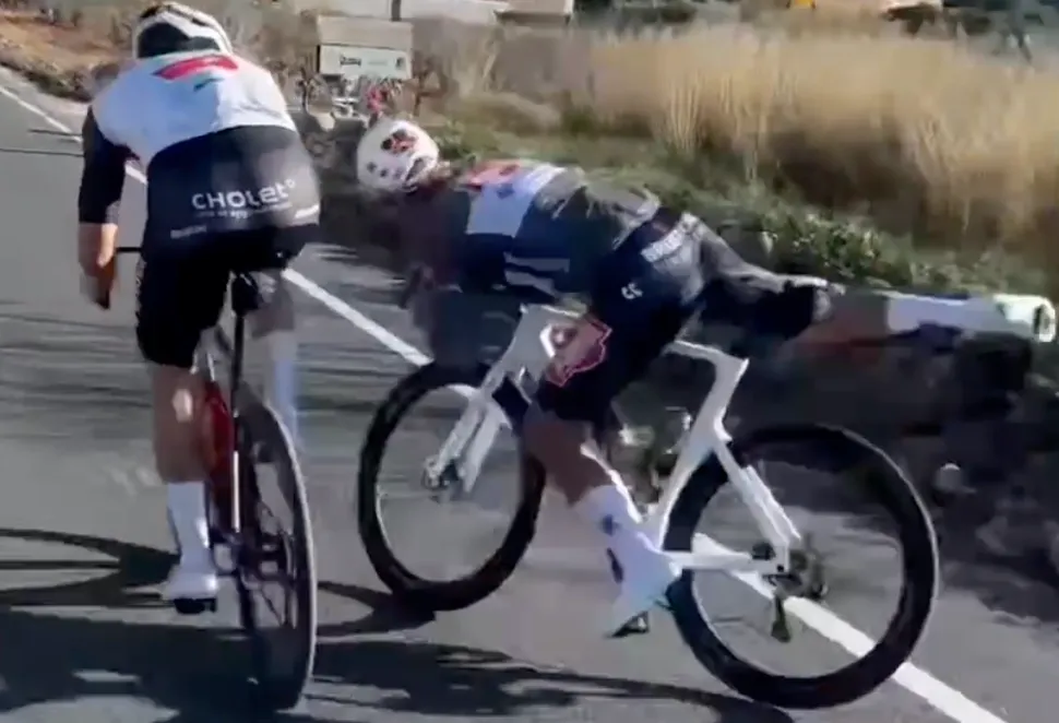 Partilha!X Mathieu van der Poel tenta arrancar para um sprint e devido ao que parece ser um problema mecânico, escapou por pouco a uma queda grave. O momento foi captado em vídeo. Um vídeo do ciclista francês da equipa UC Cholet, Anatole Leboucher, na sua conta de Instagram, está a tornou-se viral nas redes sociais. O motivo?PUB Leboucher aparece num treino com Mathieu van der Poel e captou o momento em que o neerlandês tenta arrancar para um sprint e devido ao que parece ser um problema mecânico, escapou por pouco a uma queda grave. A CRAZY save from Mathieu van der Poel 😱 pic.twitter.com/wtBLCiQRhG — Cycling on TNT Sports (@cyclingontnt) December 6, 2025 Como pode ver no vídeo, o campeão do mundo, entre outras modalidades, de ciclocrosse, ficou a centímetros de uma queda grave. Mathieu van der Poel, um acrobata sobre a bicicleta, para quem se possa ter esquecido! Van der Poel confirmou há dias que vai regressar às competições no próximo domingo, na 4ª etapa da Taça do Mundo de Ciclocrosse, em Namur, na Bélgica.PUB Crédito da imagem: Instagram Anatole Leboucher