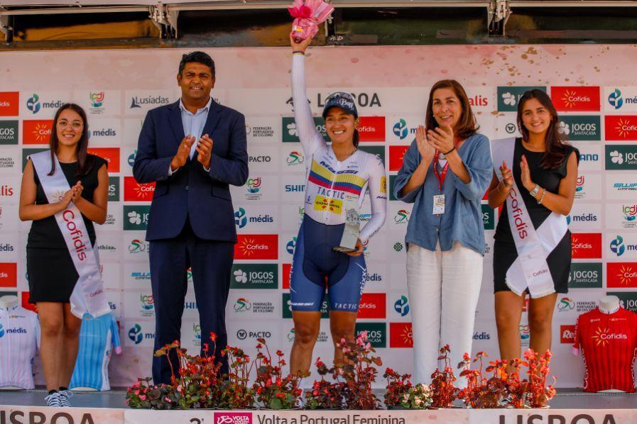 Partilha!X No contrarrelógio inaugural, a Massi Tatic Women's colocou duas corredoras no top-3 e conseguiu também a liderança da classificação por equipas. Campeã equatoriana de contrarrelógio, Miryam Nuñez, que atualmente representa a equipa da Massi-Tactic, é a primeira detentora da Camisola Amarela Jogos Santa Casa na Volta a Portugal Feminina Cofidis, após uma vitória por centésimos no prólogo realizado ontem na capital lisboeta. A corredora de 29 anos é assim a sucessora de Nathalie Eklund.PUB O contrarrelógio de 5,3 kms, realizado sob altas temperaturas que se verificavam na zona de Monsanto, Lisboa, proporcionou momentos de grande emoção, fruto de uma disputa intensa pela vitória. Prova disso foram os escassos centésimos que deram a primeira liderança da prova. A vencedora foi a ciclista equatoriana Miryam Nuñez, que cruzou a linha da meta ao cabo de 8 minutos, 4 segundos e 10 centésimos. A britânica Freya Rawlins (Soltec Team Costa Calida) conquistou o segundo lugar, ficando a escassos 12 centésimos de segundo da vencedora. Valeria Valgonen (Massi-Tactic) alcançou o terceiro lugar, a apenas 51 centésimos de Nuñez. Estas três ciclistas iniciam hoje a primeira etapa em linha com o mesmo tempo, mas por 12 centésimos que Miryam Nuñez terá a honra de vestir a amarela. Uma vez que hoje não foram atribuídos pontos nem houve contagens de montanha, a segunda e a terceira classificada da geral irão vestir, respetivamente, a Camisola Vermelha Cofidis (montanha) e a Azul IPDJ (Pontos) durante a primeira etapa em linha. “O contrarrelógio foi muito duro, todo o percurso é exigente. Não é apenas pelas subidas, mas também algumas curvas nas quais o mínimo erro poderia deitar tudo a perder. Vinha tentando ganhar uma corrida há muito, em Itália e em França, mas a vitória chegou hoje, em Portugal. Agora, que já tenho a camisola amarela, tentarei levá-la até ao fim”, disse Miryam Nuñez.PUB “Estou superfeliz e agradeço o acompanhamento do meu diretor. Dedico esta vitória à equipa e, sobretudo ao meu país, Equador, e à minha família”, concluiu. Miriam Nuñez Beatriz Roxo (UCI Cantabria Deporte-Rio Miera) foi a melhor portuguesa do dia, obtendo o quarto lugar com um tempo de 8 minutos e 14 segundos, ficando a 10 segundos da liderança. A Camisola Branca Médis, que premeia a melhor ciclista jovem em prova, está com Marta Carvalho (Extremosul/Hotel Alísios/CA Terras do Arade), que ficou em 29º lugar no contrarrelógio após cortar a meta ao cabo de 8 minutos e 42 segundos. A equipa Massi-Tactic lidera a classificação por equipas. A primeira etapa em linha acontece entre Loures e Vila Franca de Xira. O percurso de 85 kms irá incluir uma Meta Volante Cofidis na Póvoa da Galega ao km 36 e um Prémio de Montanha IPDJ de terceira categoria ao km 60, em São Domingos de Carmões.PUB Mais info: fpciclismo.pt firstcycling.com Lê também: Apresentada a Volta a Portugal Feminina Cofidis 2023 Imagens: Federação Portuguesa de Ciclismo
