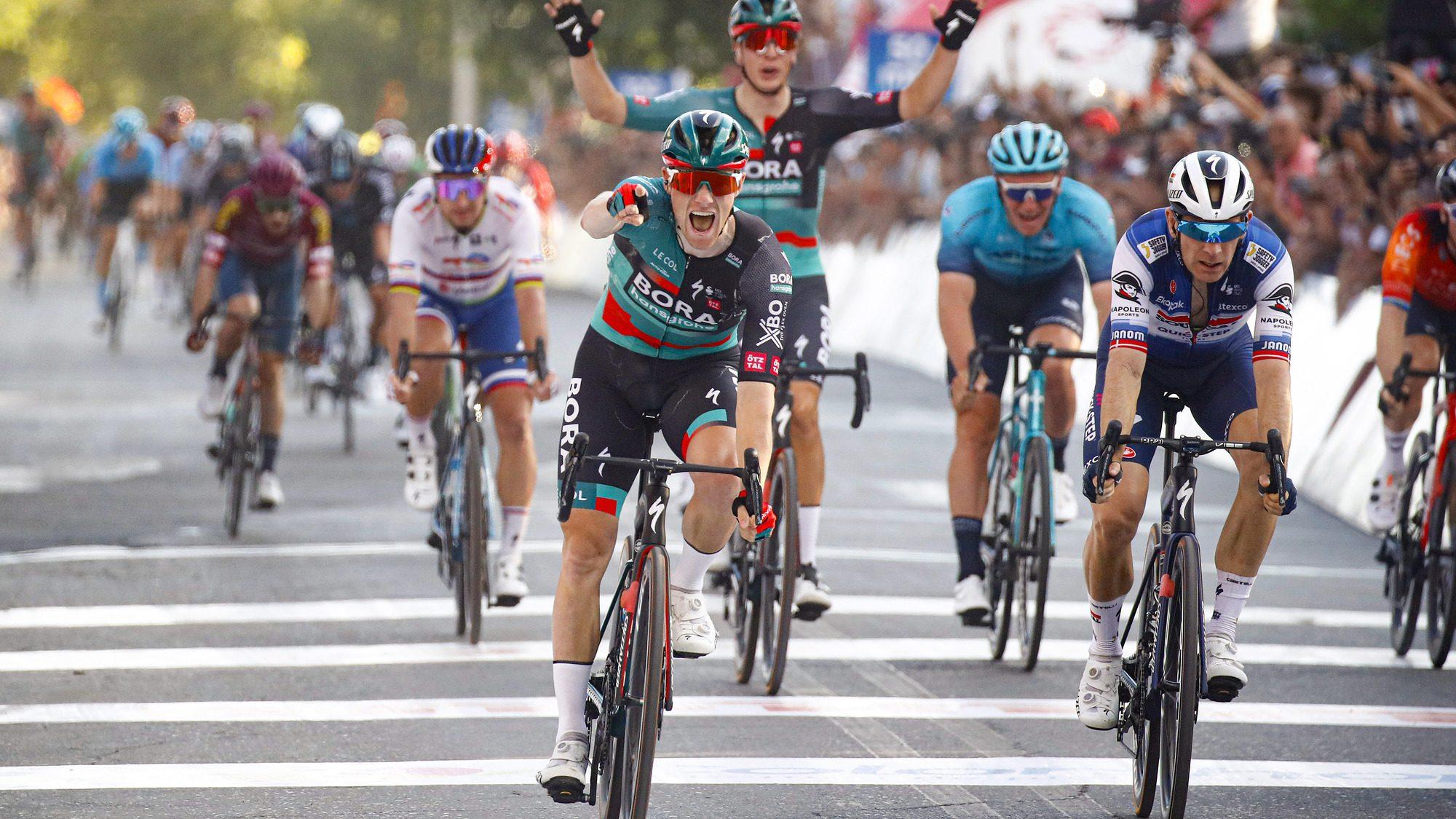 Partilha!X Foi um final de etapa caótico, com quedas a fracionarem o pelotão. Sam Bennett (BORA-hansgrohe) é o primeiro líder da Volta a San Juan, que conta com uma equipa portuguesa. O velocista da BORA-hansgrohe, Sam Bennett, venceu a primeira etapa da Volta a San Juan, na Argentina, após um sprint em pelotão totalmente fracionado, batendo Michael Morkov (Soudal Quick-Step) e Giacomo Nizzolo (Israel-Premier Tech).PUB Foram 143,9 quilómetros com partida e chegada em San Juan. Numa etapa plana, propícia a roladores e a fugas longas, mas também ao controlo da corrida pelas equipas dos principais velocistas, a vitória acabaria, como é comum nestes cenários, por ser disputada ao sprint em pelotão compacto. 🏆 Vuelta Internacional San Juan 2023🇦🇷 🏁 Terminó la primera etapa, la victoria fue para 🔥 Sam Bennett ciclista del @BORAhansgrohe con este 🕙 3hs 19' 16". 🥇 Sam Bennett🥈 Michael Morkov🥉 Giacomo Nizzolo#DondeTodoEmpieza #VueltaSJ2023 pic.twitter.com/T3UooFBVGq — Vuelta a San Juan OK (@vueltasanjuanok) January 22, 2023 PUB Após a fuga do dia, numerosa, ter sido eliminada pelas formações da Soudal Quick-Step, TotalEnergies, BORA-hansgrohe e Movistar, a cerca de 20 quilómetros da meta, os comboios dessas equipas começaram formar-se e o pelotão ficou cada vez mais tenso. Ao entrar na cidade de San Juan, todos queriam estar na frente e uma grande queda ocorreu por volta da 30ª/40ª posições. Nenhum sprinter ou favorito ficou envolvido. A cinco quilómetros do final, a TotalEnergies, de Peter Sagan, assumiu a liderança, seguida pela Soudal Quick-Step, DSM e BORA-hansgrohe. Ninguém com pretensões à vitória quis revelar-se ou meter-se ao vento demasiado cedo e ainda houve muitos lançadores a 2,5 quilómetros da linha de meta.PUB Então, o campeão mundial Remco Evenepoel entrou ao trabalho para o campeão europeu Fabio Jakobsen, sprinter da equipa Soudal Quick-Step. Os últimos quilómetros foram caóticos, com um separador central da estrada a cortar o pelotão em dois. Na BORA-hansgrohe, Danny Van Poppel conseguiu pegar na cabeça do pelotão para Sam Bennett e lançou o irlandês na perfeição nos últimos 500 metros, que venceu com autoridade, à frente de Michael Morkov, Giacomo Nizzolo, Danny Van Poppel e Gleb Syritsa (Astana Qazaqstan). Sam Bennett partirá para a segunda etapa como líder da 39ª Volta a San Juan. Será a mais longa das sete, com 201,1 quilómetros a ligar Valle Fértil a Jáchal. Uma equipa portuguesa está presente na corrida argentina. A AP Hotels & Resort-Tavira-SCFarense de Vidal Fitas terminou a primeira etapa com Miguel Salgueiro e Alvaro Trueba com o mesmo tempo do vencedor. Delio Fernández, Rúben Simão, Venceslau Fernandes perderam mais de um minuto e Rafael Lourenço mais de cinco. Classificações completas: www.procyclingstats.com Também vais querer ler… Tour Down Under: Simon Yates vence última etapa, mas Jay Vine segurou vitória na geral [com vídeo] PUB Fotografias: Roberto Bettini/SprintCyclingAgency/Facebook BORA-hansgrohe